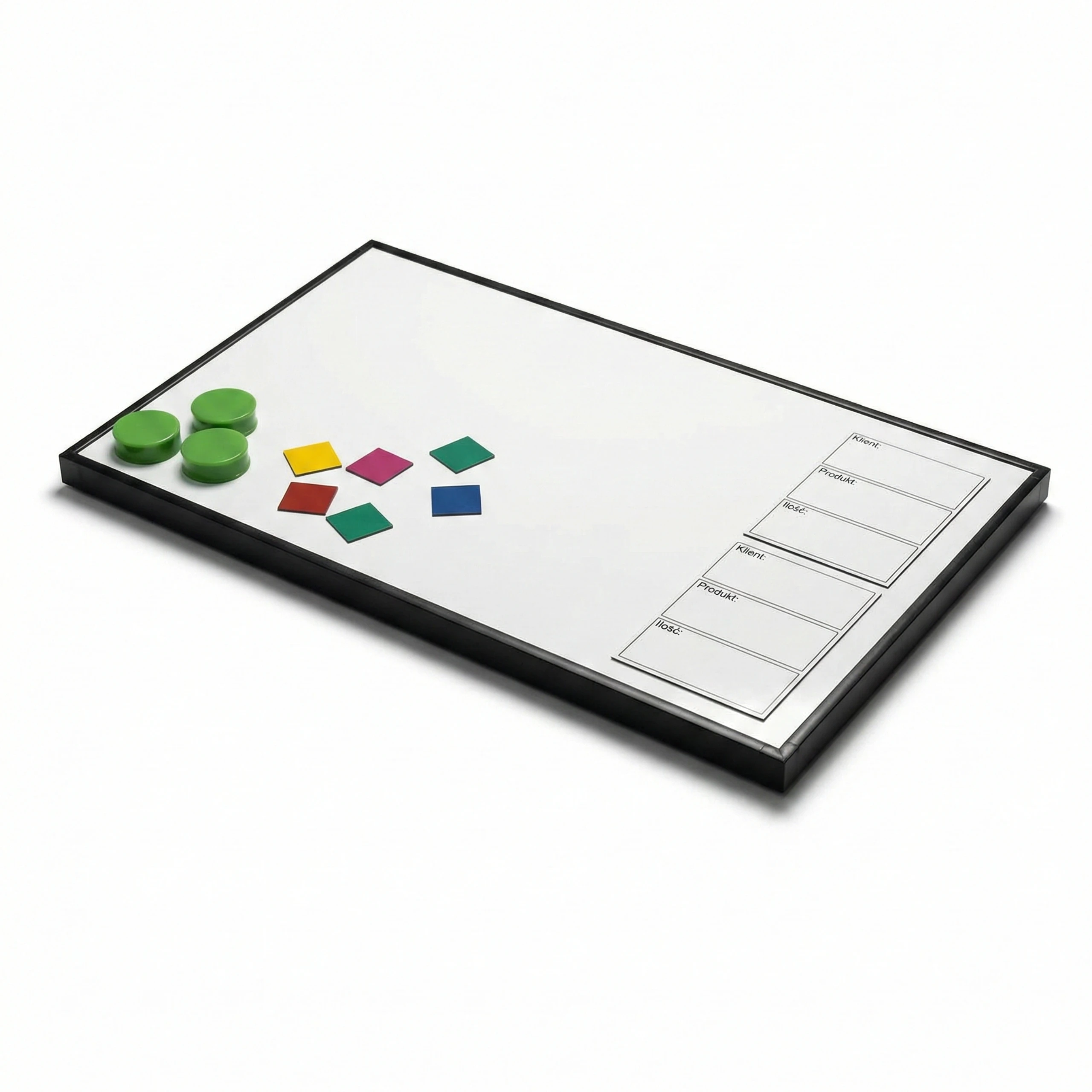 Do pisania po tablicy używaj markerów suchościeralnych. Markery permanentne oraz półpermanentne nie sprawdzą się w przypadku tego typu powierzchni.