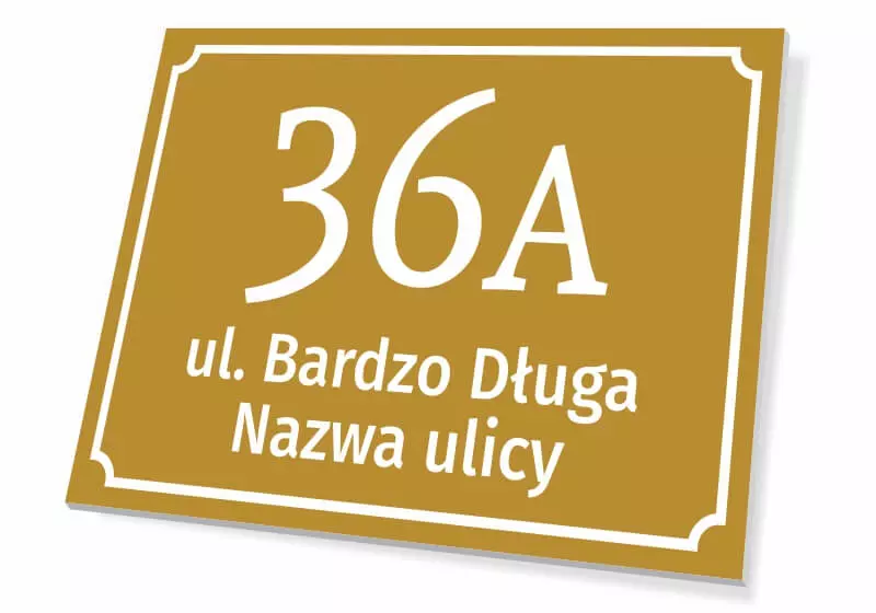 Tabliczka adresowa na dom: numer posesji, nazwa ulicy