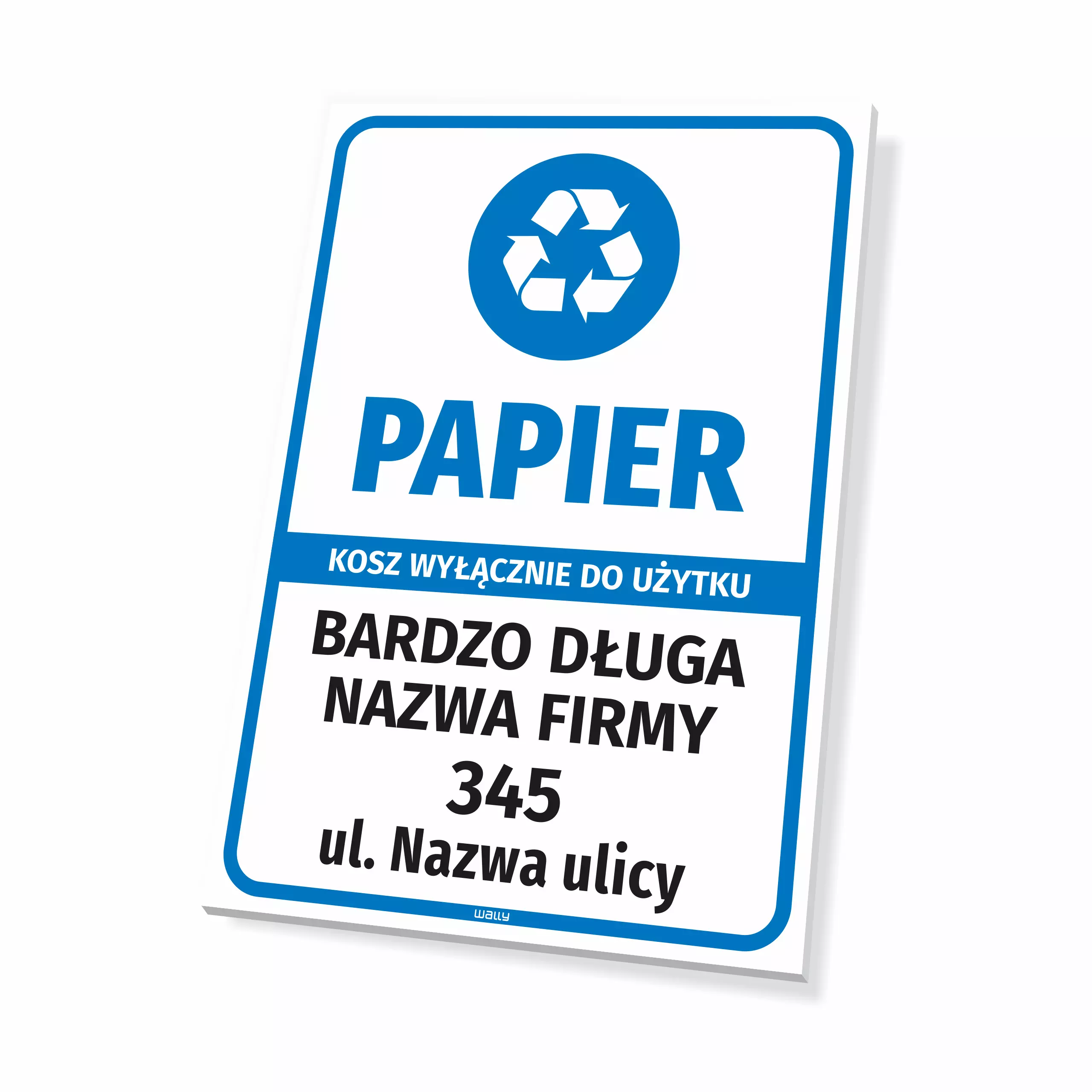 Tabliczka do oznaczania kosza na odpady - papier, kosz wyłącznie do użytku: nazwa firmy, adres