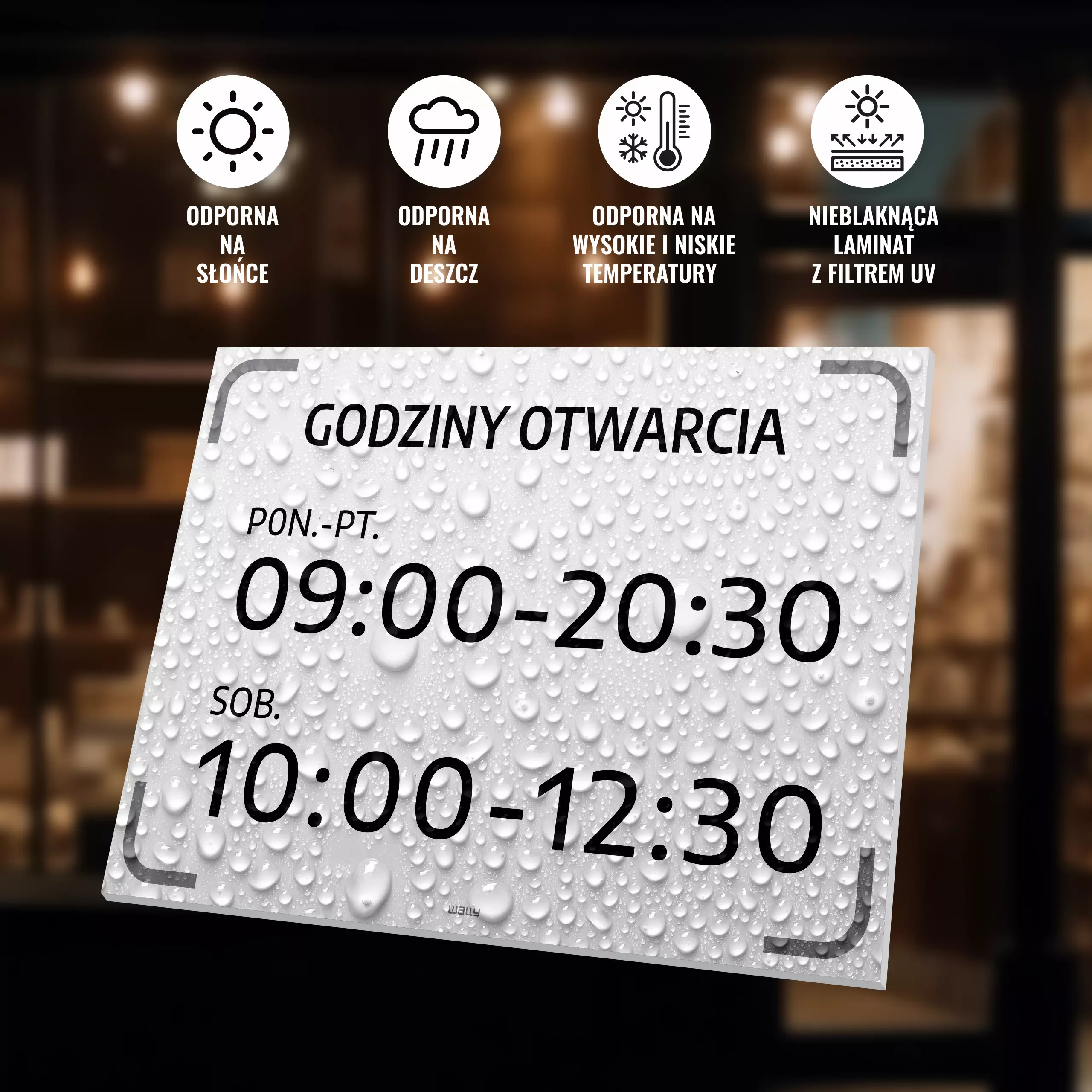 Tabliczka: godziny, dni otwarcia dla sklepu, biura, placówki