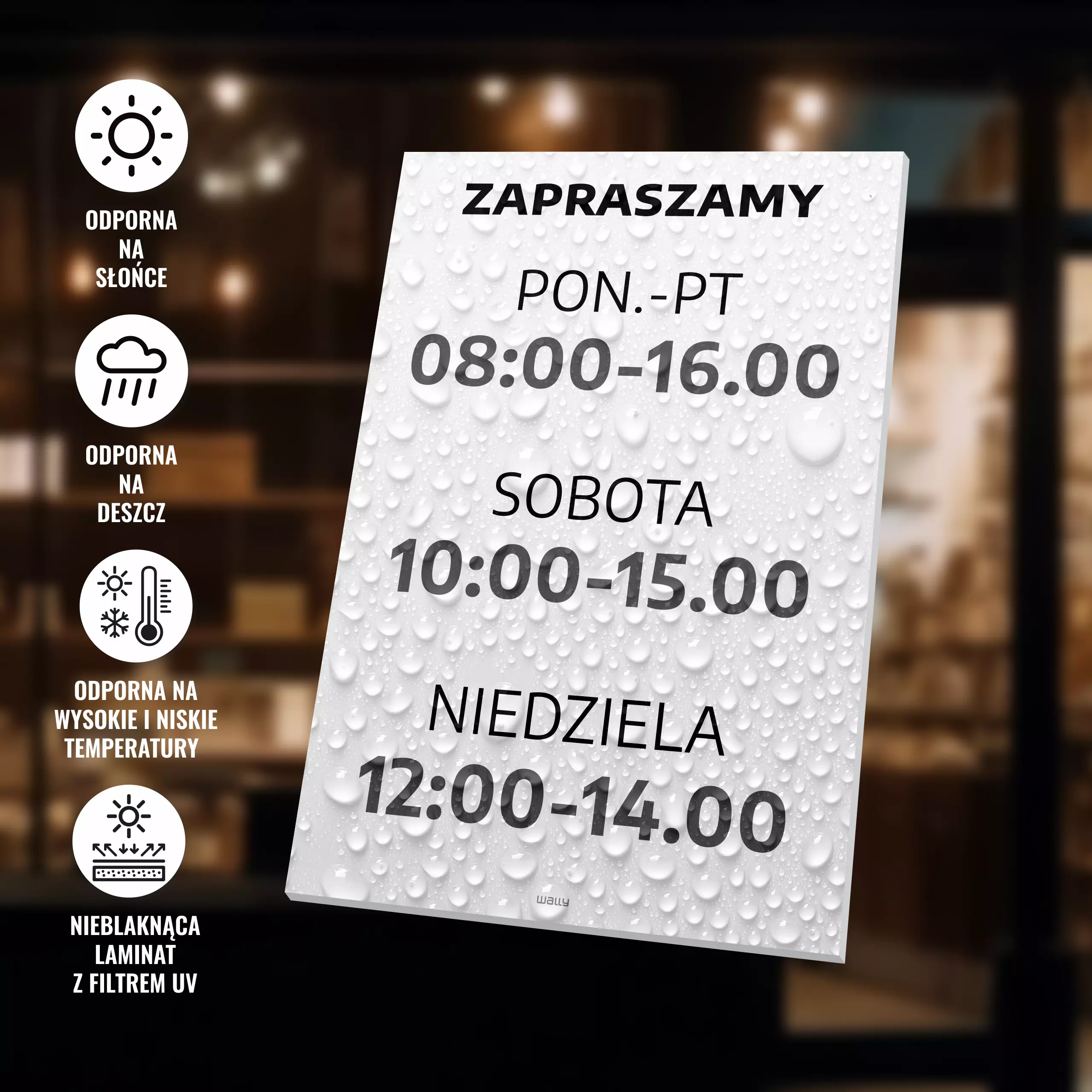 Tabliczka - zapraszamy z personalizacją dni, godzin handlu