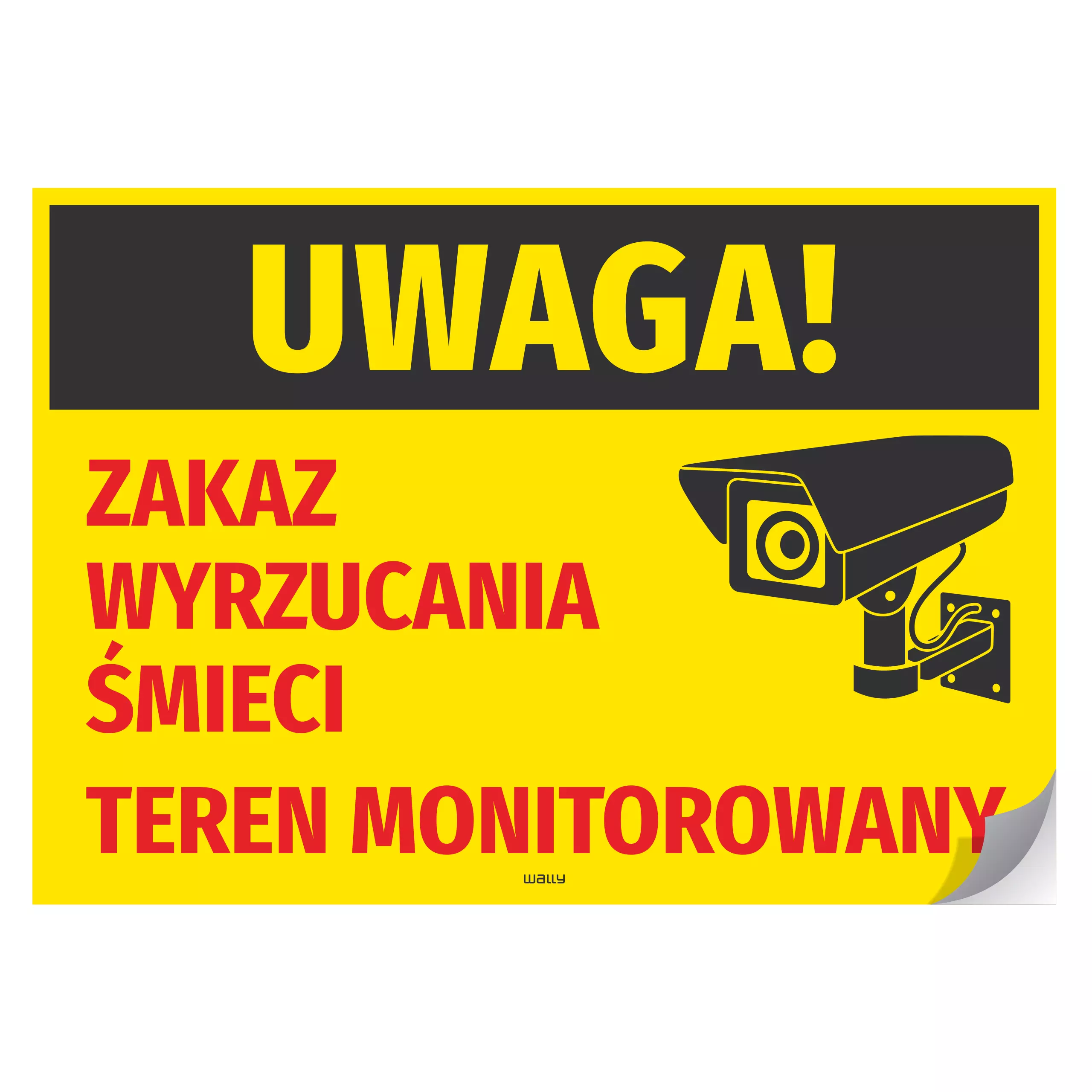 Naklejka: Uwaga! Zakaz wyrzucania śmieci Teren monitorowany