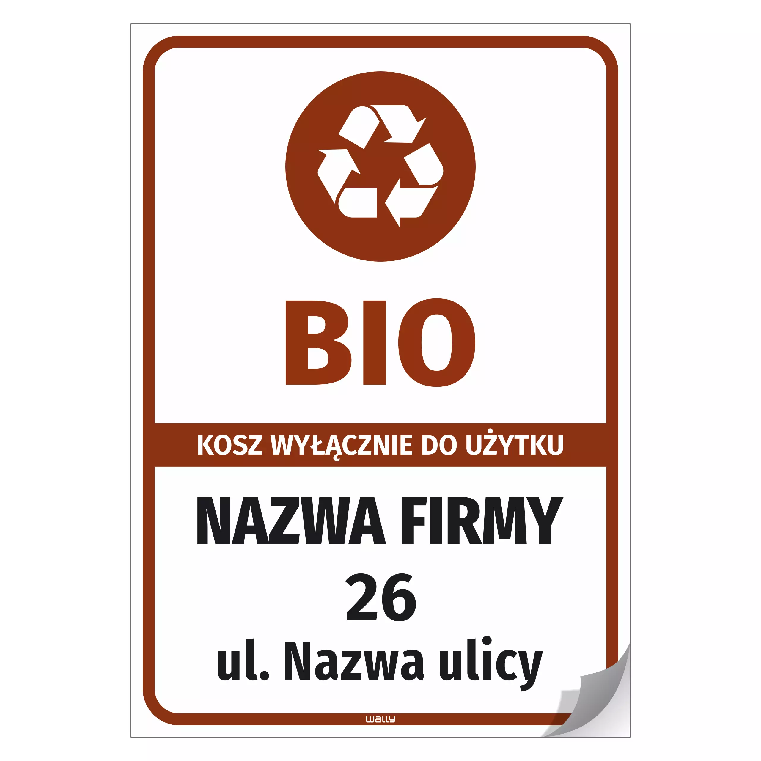 Naklejka na kosz z odpadami: BIO, wyłącznie do użytku - adres i nazwa firmy