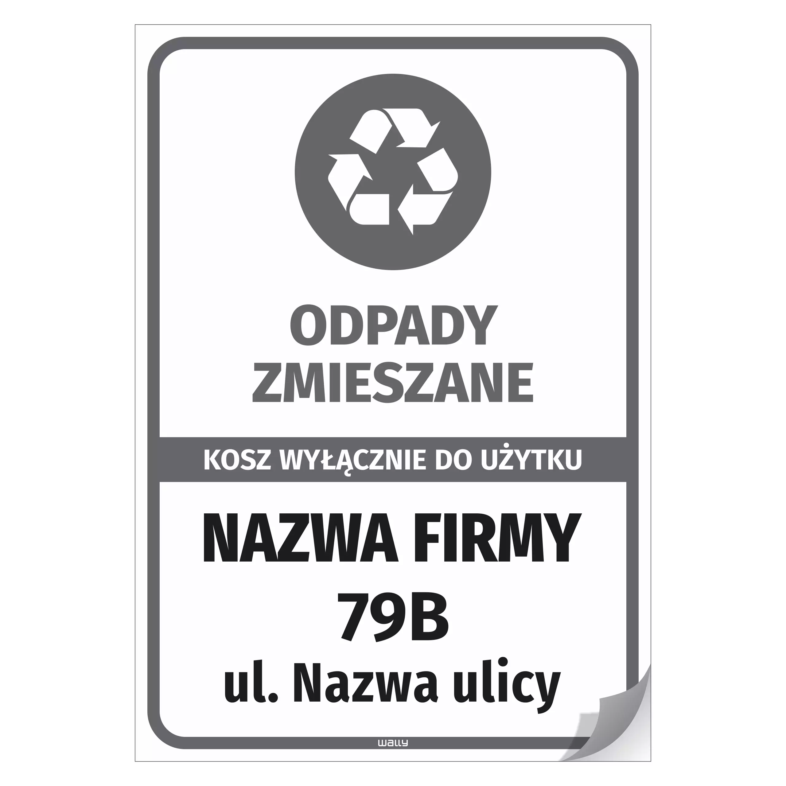 Naklejka na kosz: odpady zmieszane, wyłącznie do użytku - adres i nazwa firmy