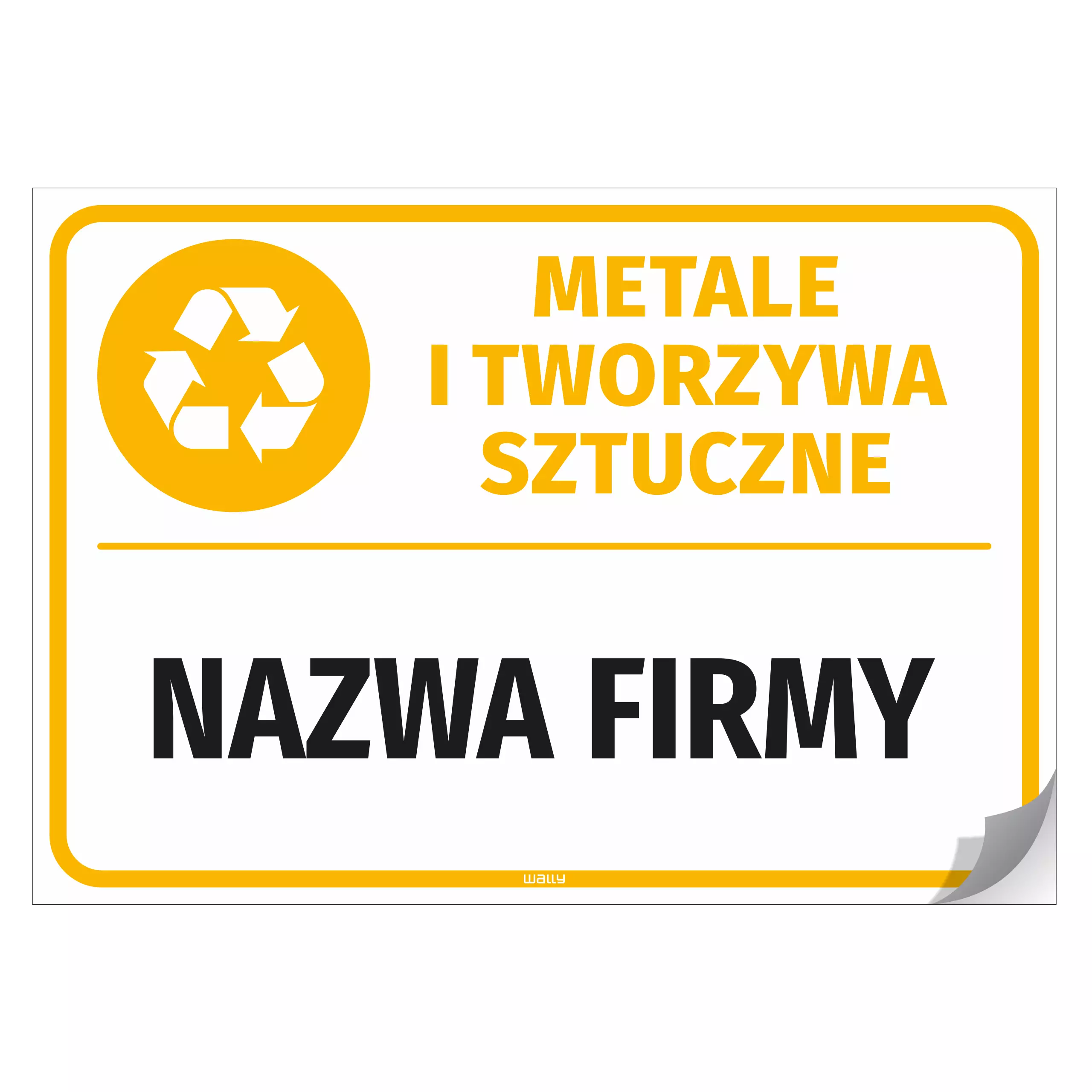 Naklejka na kosz z odpadami: Metale i tworzywa sztuczne, z nazwą firmy